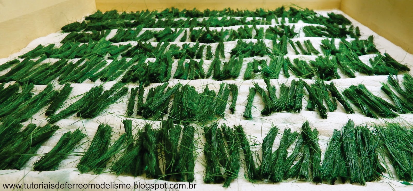 Em seguida faça a aplicação do acabamento preferido. No caso do exemplo usei Fine Turf - green blended (Woodland T 49)